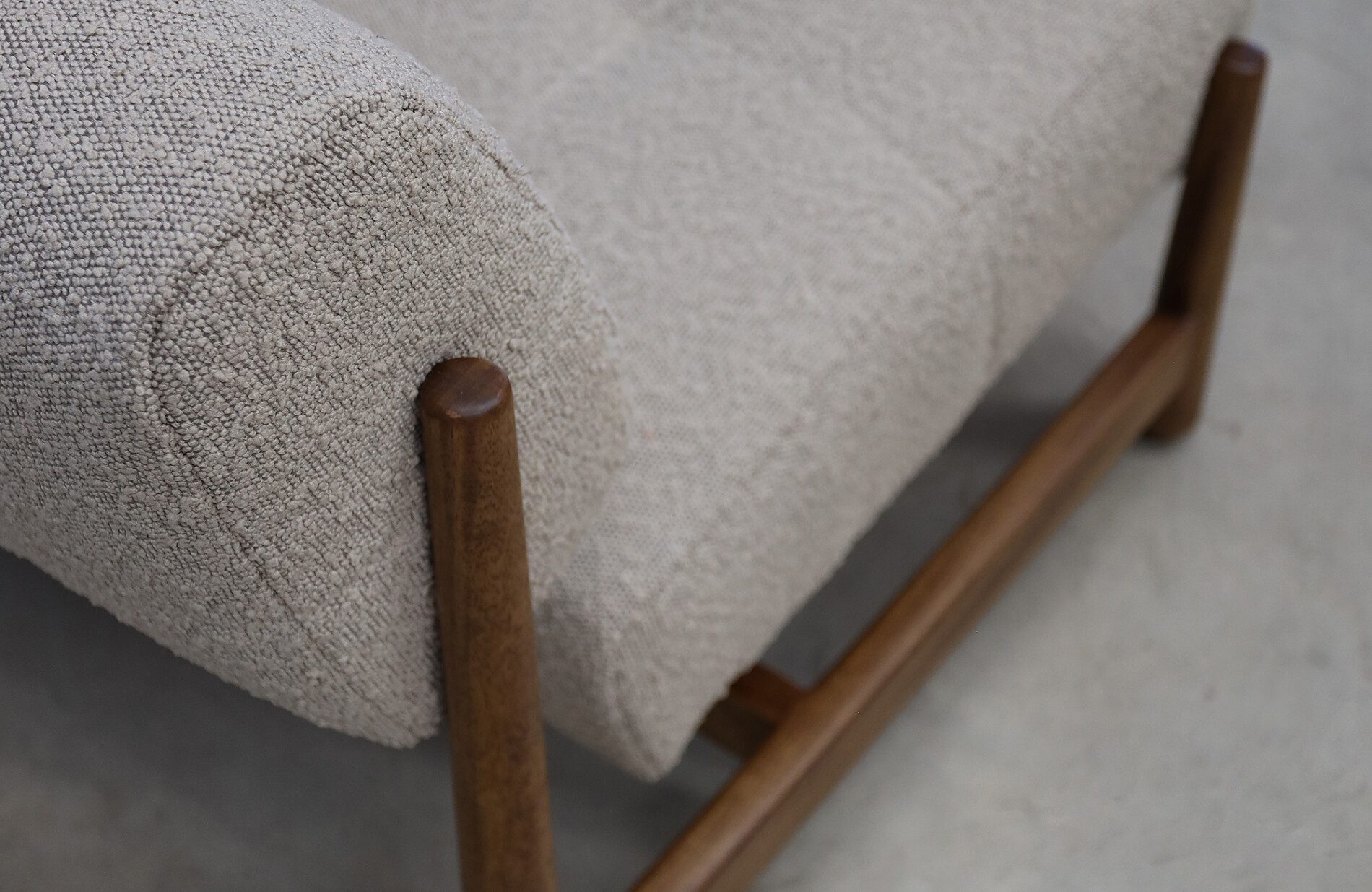 As sete décadas da Milar, celebradas em 2024, reverenciam tanto o seu legado, em relançamentos de clássicos da marca, como as novas peças. Uma delas é a poltrona Nini, assinada por Ana Alonso. O móvel vem inspirado na relação entre avó e neta, unindo traços contemporâneos e elementos que se conectam a memórias e afetividade – a exemplo da rolha e do sisal, que faziam parte do alambique do bisavô da designer.