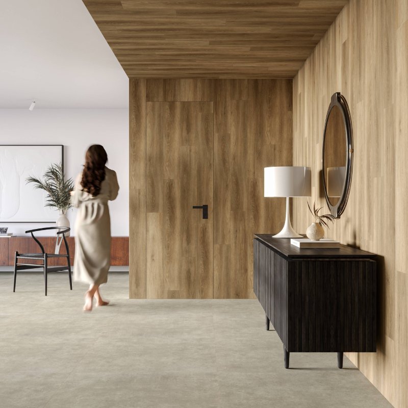 Inédita no mercado brasileiro, a tecnologia supermate redefine a experiência sensorial dos pisos vinílicos. No portfólio da Eliane Floor, está presente na série Tanin e combina naturalidade, resistência e sofisticação. Do ponto de vista estético, o supermate garante uma reprodução ainda mais fiel da madeira. Ele deixa a superfície totalmente fosca e homogênea, o que reduz o brilho e a reflexão de luz, amplia o conforto visual e intensifica a percepção sensorial.