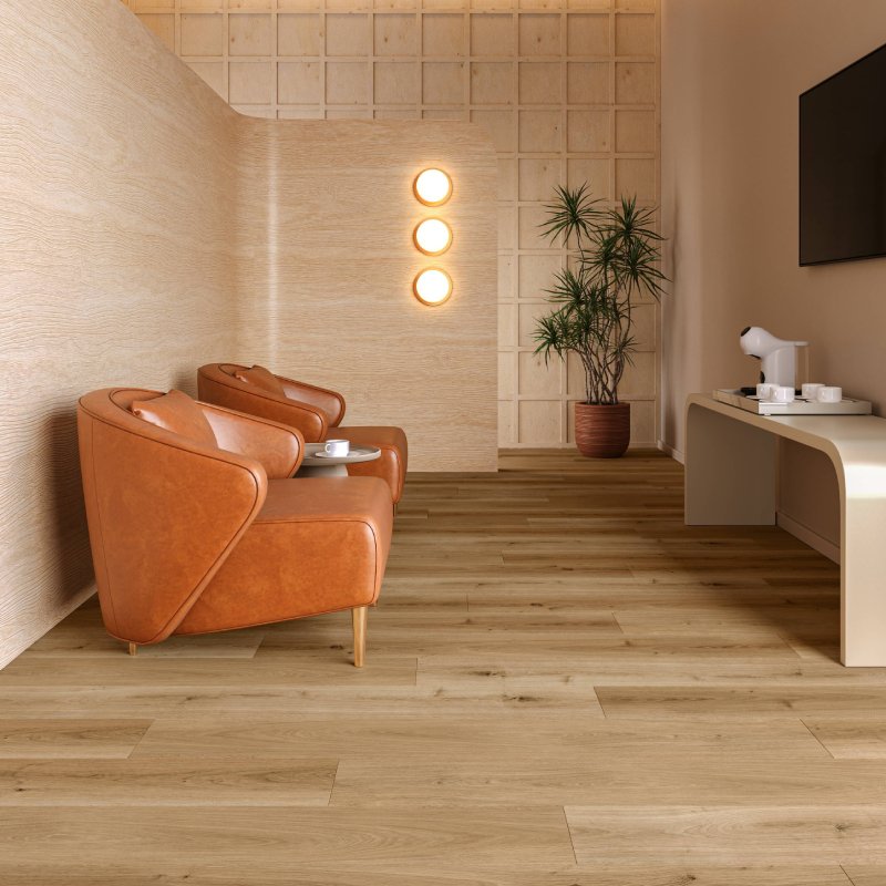 Além da tecnologia supermate, a Eliane Floor destaca as séries Plantum, encontrada na tonalidade Mel e indicada para projetos que valorizam a naturalidade, e Arbus, que aposta no minimalismo por meio de um relevo contínuo e está disponível nas opções Denali Iroko, Gros Pinoli, Logan Camel e Jasper Pinha.
