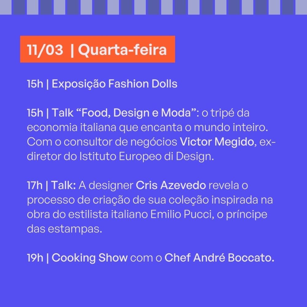 – 15h – Talk “Food, design e moda: o tripé da economia italiana”