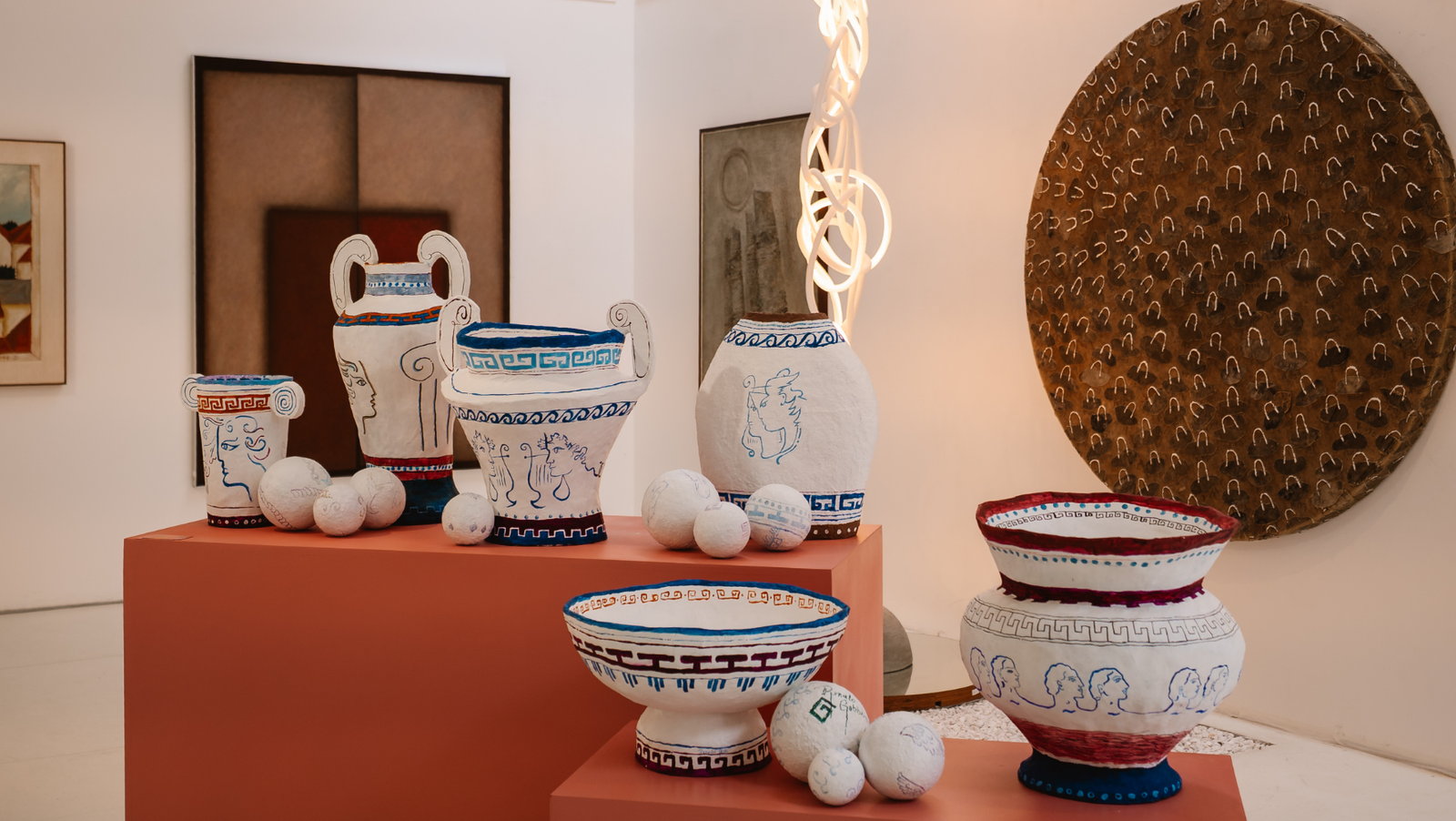 O design remete às cerâmicas gregas da Antiguidade, especialmente às superfícies decoradas com figuras que narravam mitos e cenas do cotidiano. Ao reinterpretar esse repertório, a coleção propõe um deslocamento simbólico: objetos tradicionalmente utilitários são ressignificados como elementos de contemplação, nos quais a imperfeição se estabelece como elemento base da estética.