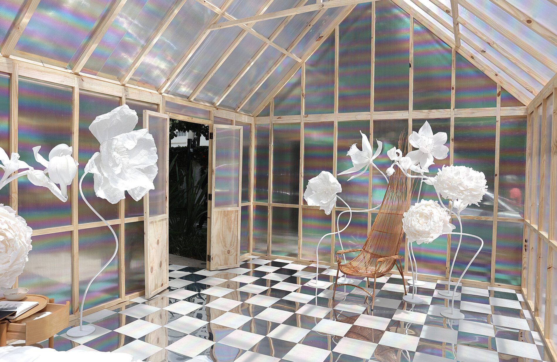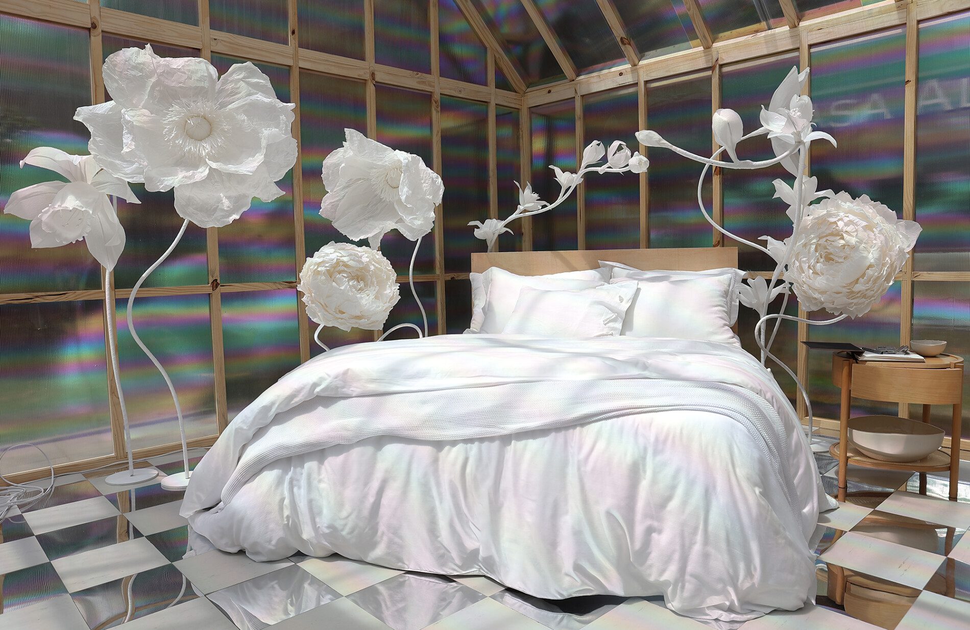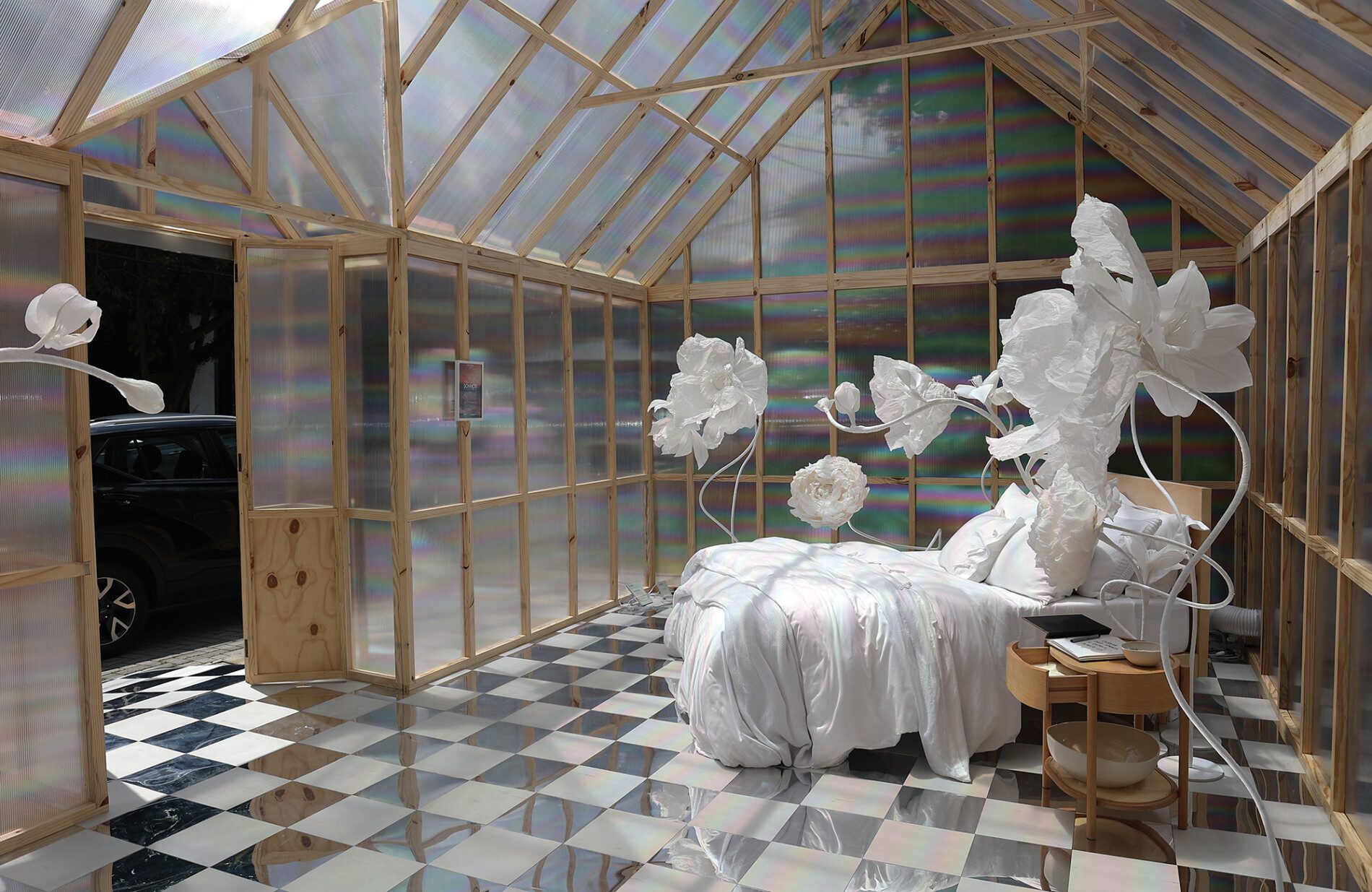 Uma das atrações mais concorridas e fotografadas da DW! SP 2024, a Estufa dos Sonhos nasceu na imaginação do diretor criativo Michell Lott (@lottlott) em collab com a Casa Almeida (@casaalmeidaoficial). No interior de uma casinha com estrutura de madeira, em frente ao showroom da marca, na Alameda Gabriel, surge um cenário onírico, composto de flores gigantes de papel, reflexos furta-cor e uma cama toda branca, arrumada com as peças mais preciosas e macias da Casa Almeida.