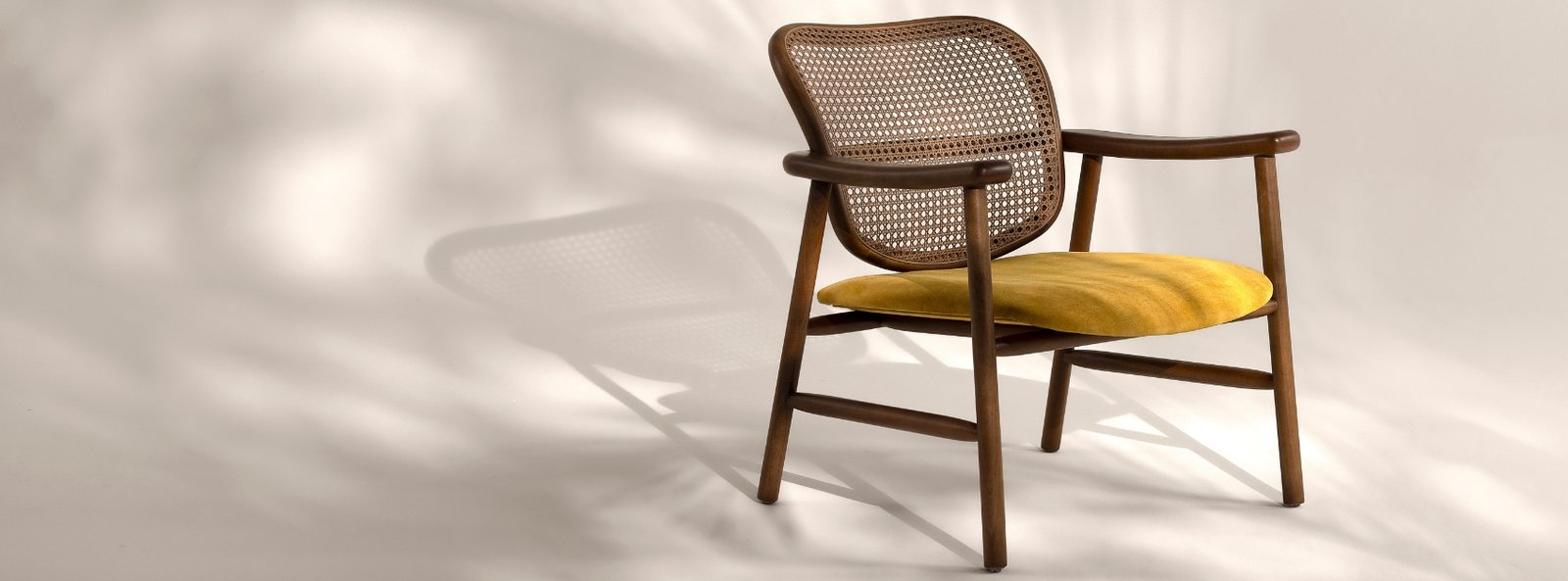 As cadeiras do novo portfólio chamam a atenção pela personalidade forte. Na Cúrcuma, desenhada pela Plataforma4, a linha diagonal formada pelo encosto e o pé dianteiro define o desenho da peça. A Uçá, de Larissa Catossi, faz referência ao caranguejo que habita os manguezais brasileiros e busca traduzir resistência e adaptação por meio de assento e encosto feitos de couro natural tensionado. Nos modelos Ada, Ciranda e Marco, do Estúdio Lider, o modo como a estrutura de madeira é construída e interage com as partes estofadas se torna uma atração em si.