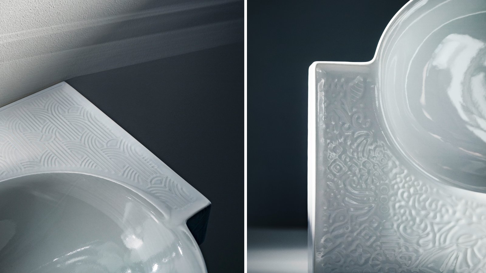 Os relevos da coleção The New Classic, de Marcel Wanders para a Laufen, exploram ao máximo o potencial da Saphirkeramik, material cerâmico inovador desenvolvido com exclusividade pela Laufen, que combina alta resistência e espessuras finas | Fotos: Divulgação