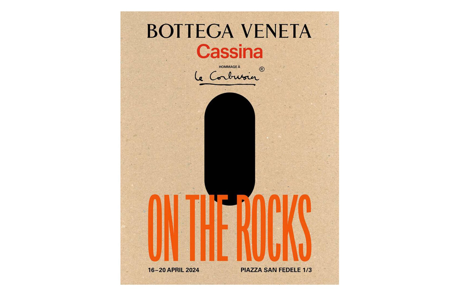 em parceria com a Cassina e a Fondation Le Corbusier, a Bottega Veneta criou a instalação On The Rocks no Palazzo San Fedele. A obra coloca em destaque a peça LC14 Tabouret Cabanon, desenhada em 1952 por Le Corbusier, para sua cabana minimalista na Côte d’Azur.