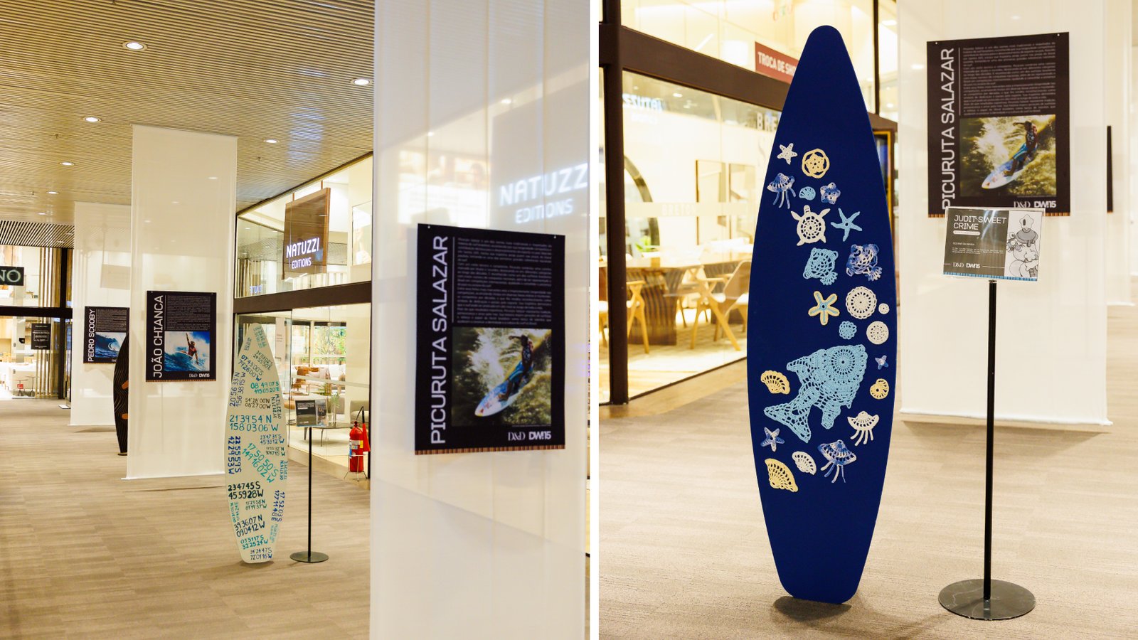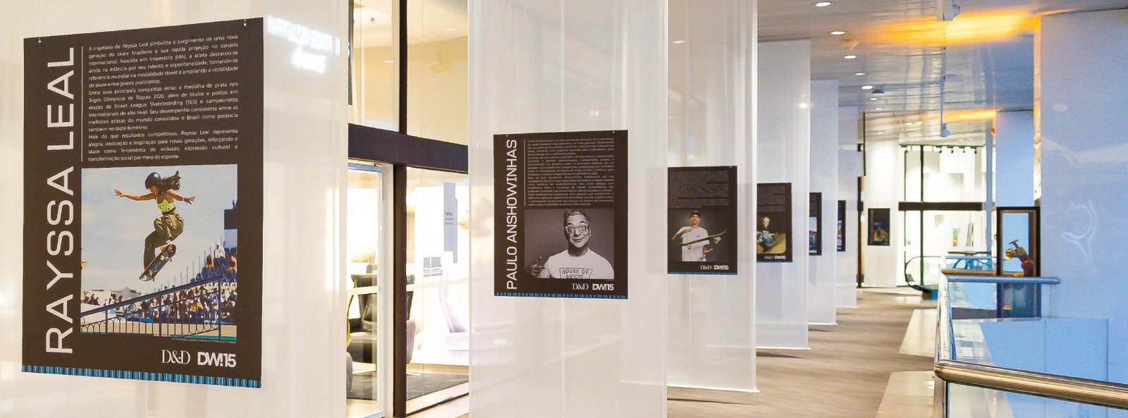 Até 29 de março, o D&D Shopping apresenta a exposição Arquitetura e Design Esportivo, atração especialmente criada para integrar a programação da DW!15. A mostra traça um panorama de como o universo esportivo influencia os projetos urbanos, o comportamento e o estilo de vida contemporâneo. Cada andar do endereço exibe ambientações dedicadas a uma modalidade: skate, surfe, futebol, atletismo (corrida) e ciclismo. Esse percurso conceitual convida o público a refletir sobre a relação entre cidade, movimento e espaço construído.
