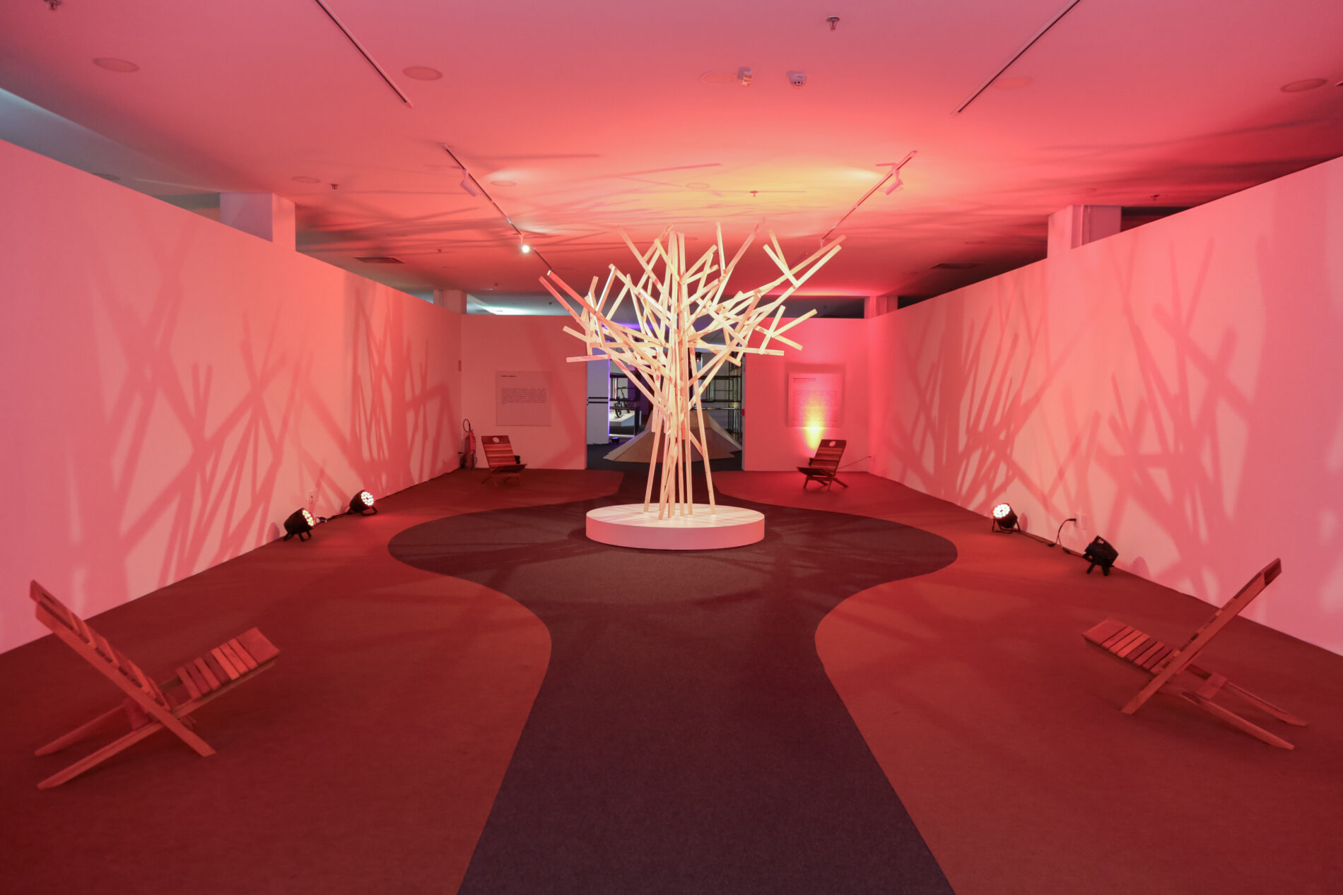 Instalada numa área de mais de 1200 m2, no piso térreo do Lar Center, a exposição transita pela diversas escalas do design e descreve como esse campo do conhecimento contribui para a evolução da sociedade em inúmeros aspectos. Está presente nos utensílios com os quais executamos tarefas cotidianas, no mobiliário que propicia conforto e acolhimento dentro de casa e ainda nos equipamentos de uso público, capazes de aprimorar nossa experiência em relação ao espaço urbano.
