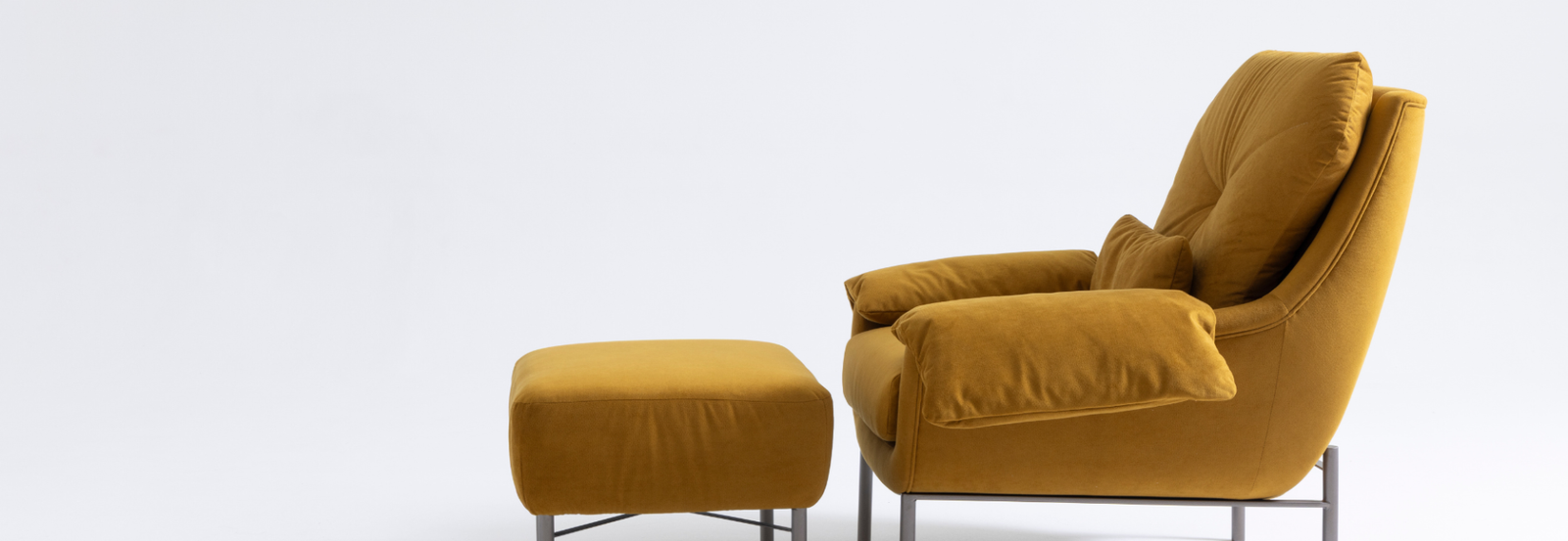 Entre os destaques, a Cadeira Italiana surge como desdobramento de uma poltrona já existente, apresentada nas versões com e sem braços. A peça articula referências modernistas e enfatiza o contraste entre estrutura firme e superfícies acolhedoras. A Cadeira Orelha explora o encontro entre base em madeira e encosto envolvente, enquanto a Cadeira Arco organiza sua identidade a partir de um encosto curvo que remete a referências da arquitetura modernista.
