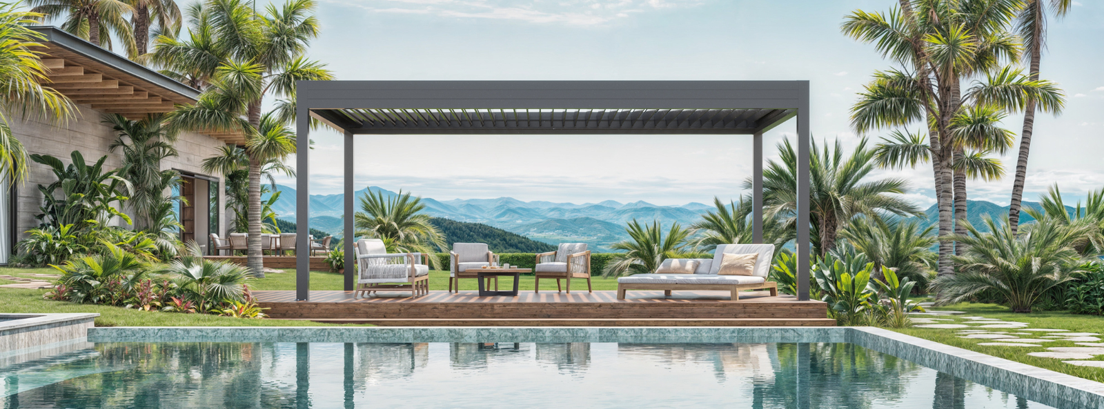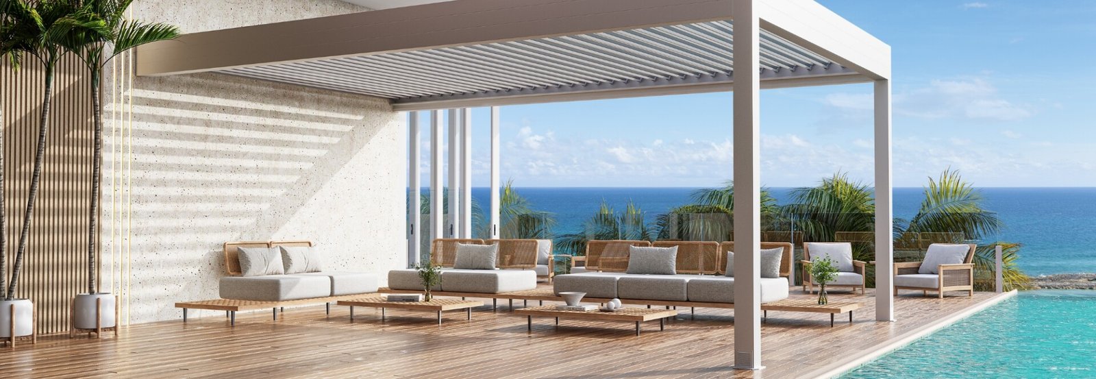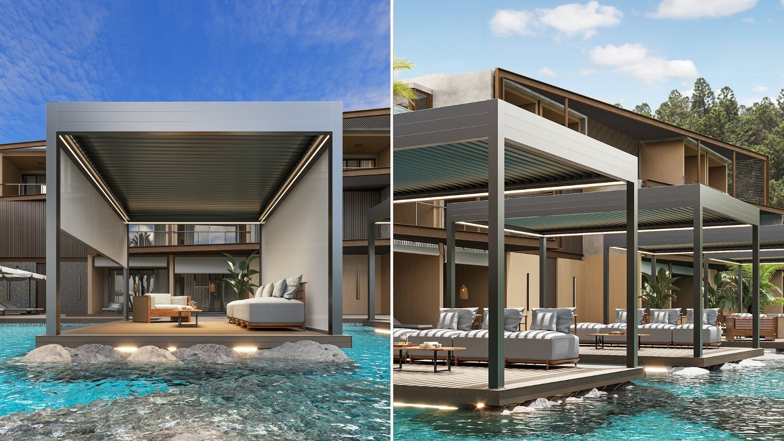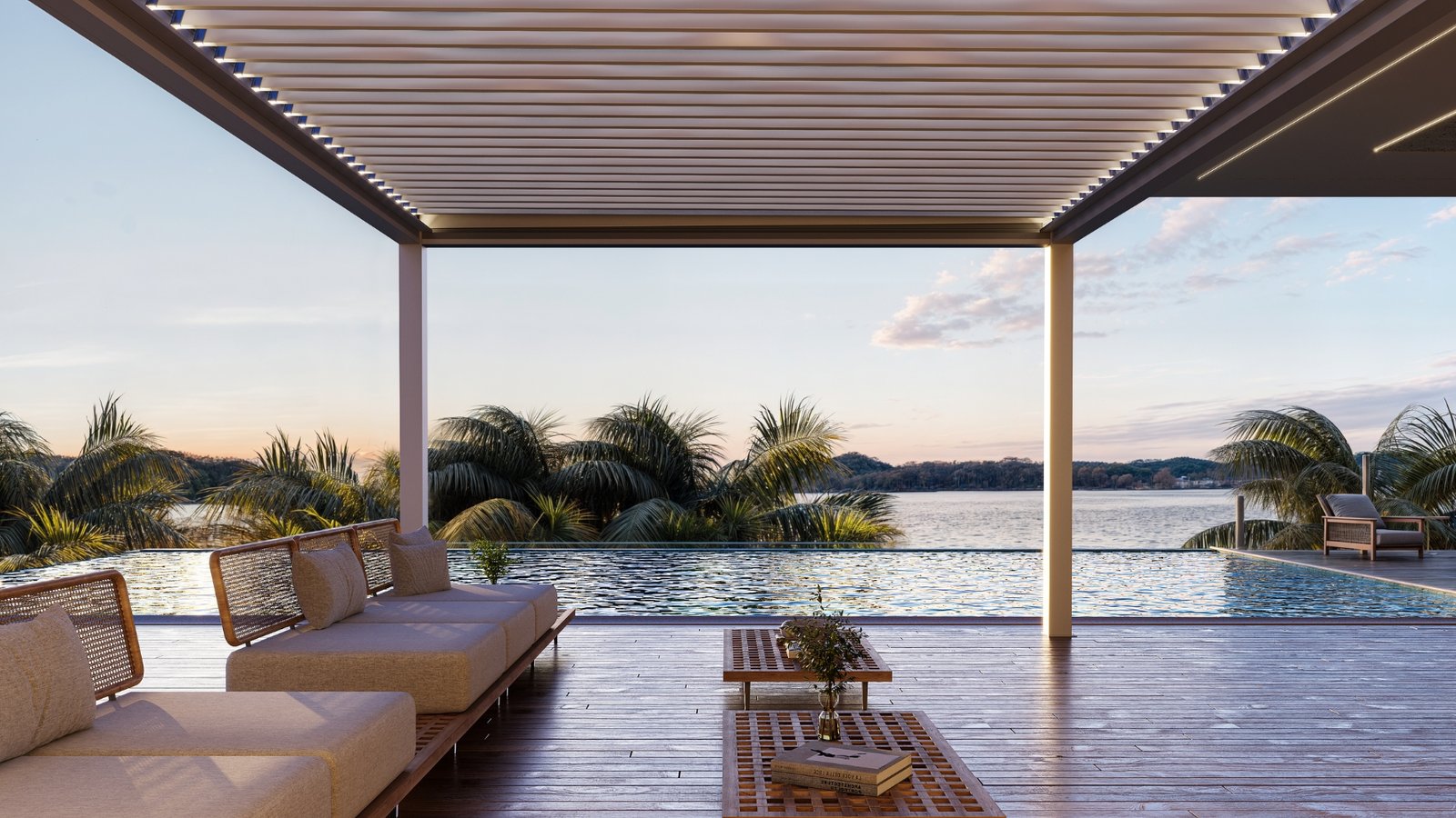 Com design autoportante, o Isla Alumina é uma cobertura retrátil que transforma áreas externas em verdadeiros oásis. A solução cria um refúgio exclusivo para momentos com família e amigos: pode oferecer um ambiente sombreado e protegido em dias de sol intenso ou se abrir para proporcionar conexão direta com a paisagem. Construída com lâminas de alumínio direcionáveis e/ou retráteis, a estrutura se apoia sobre postes de alumínio com pintura eletrostática. Além do acabamento de alto padrão, o sistema foi projetado para resistir a diferentes condições climáticas e conta com montagem e instalação simplificadas.