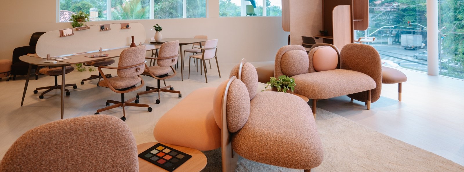 O resultado são móveis que ajudam a desenhar o ambiente e propõem um escritório mais sensível, consciente e humano. Isso porque a flexibilidade proporcionada pelo mobiliário é uma forma de respeitar a individualidade de cada colaborador e, ao mesmo tempo, contribuir para a criação de uma cultura corporativa consistente. Um exemplo do conceito está na Mesa Nômade: com ajuste automático de altura, ela permite alternar momentos de trabalho sentado e em pé. É design que respira junto com a rotina e transforma movimento em propósito.