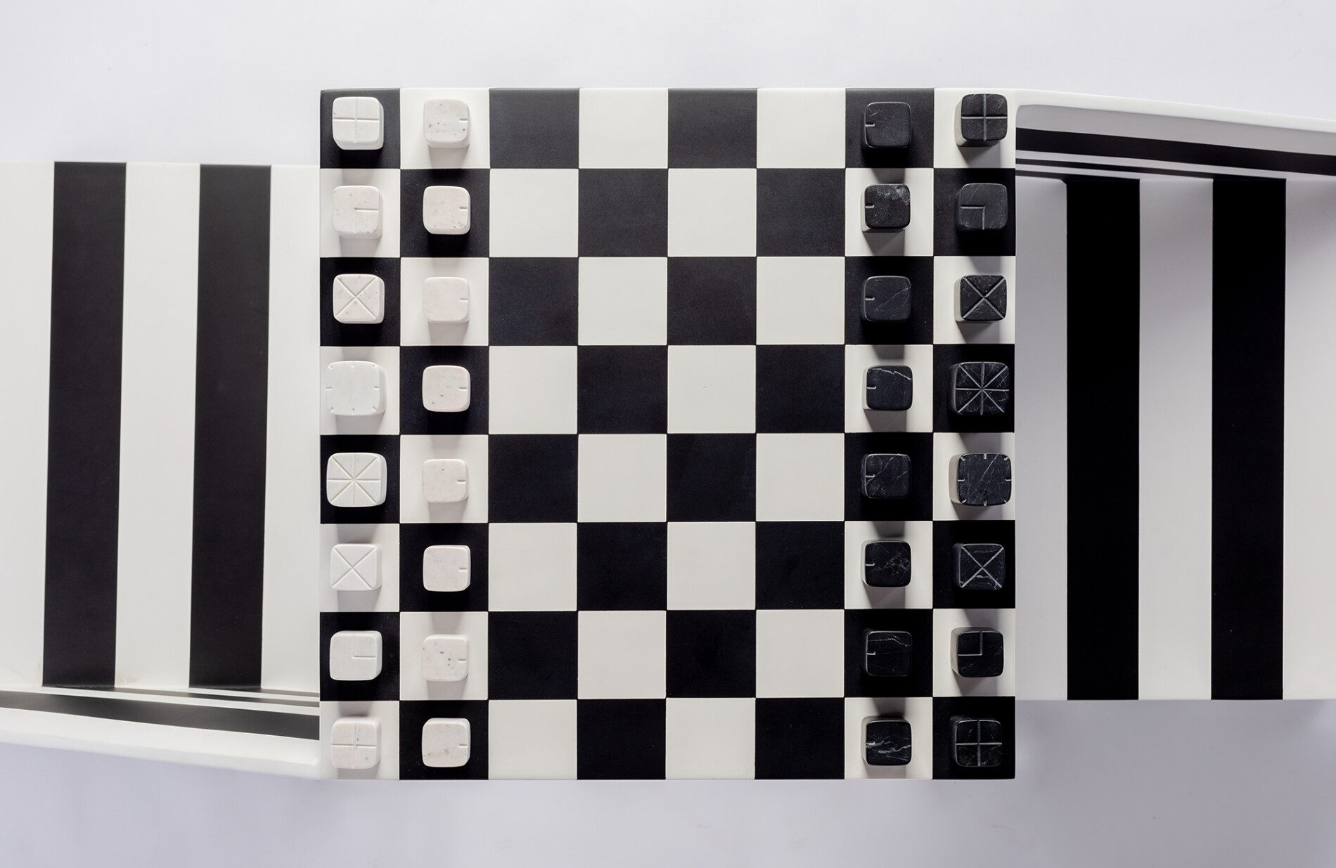 Outro objeto de destaque é a fruteira Balsa, produzida em mármore, mesmo material que dá corpo às novas peças de xadrez que compõem o look and feel completo com a mesa Cambito.