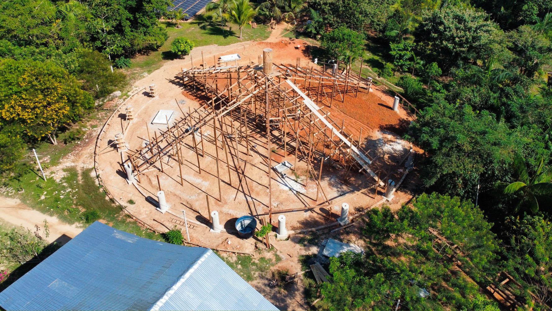 As construções, todas realizadas com madeira nativa extraída e beneficiada na própria aldeia, representam uma nova forma de construir na floresta, aliando saberes tradicionais, sustentabilidade e soluções arquitetônicas contemporâneas. A execução foi coordenada por uma equipe multidisciplinar, com participação ativa da comunidade indígena, construtores ribeirinhos e profissionais de diversas áreas, superando desafios logísticos extremos — como o transporte de um trator desmontado rio acima e a permanência de trabalhadores na aldeia por longos períodos.