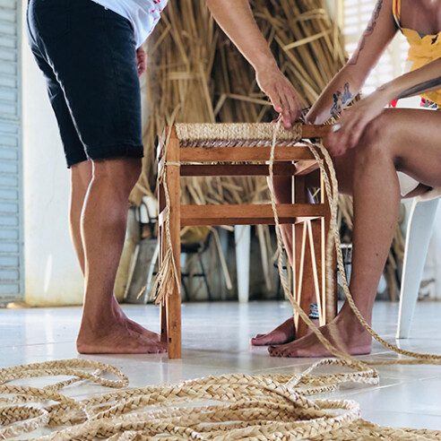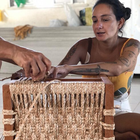 Naná Oliveira é uma multiartista sergipana que atua há mais de dez anos com comunidades tradicionais, desenvolvendo produtos e pesquisando territórios e tradições. Em 2023, após cinco anos de pesquisa no Povoado Tigre, lançou a Casa de Marimbondo, marca de mobiliário e artefatos que preserva a memória estética e social do povo nordestino. Para a Casa de Marimbondo, o design é uma forma de contar histórias sobre biomas e modos de viver, mantendo viva a herança cultural sergipana. Na palestra “Casa de Marimbondo: Entre o design e o artesanato”, Naná mostra como técnicas manuais de mulheres artesãs do Tigre, da colheita ao beneficiamento da fibra de taboa, embasam um processo criativo ligado ao bioma pantaneiro/costeiro. Assim, revela-se o potencial de um design integrado às raízes locais.