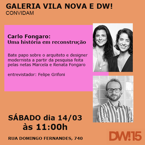 As netas do arquiteto, Marcela e Renata Fongaro, a primeira designer de interiores e a segunda arquiteta, serão entrevistadas por Felipe Grifoni, diretor cultural da BMDG (Brazilian Modern Design Guild). A conversa abordará aspectos da vida e da obra de Fongaro, também serão exibidas algumas imagens e fotos do acervo.