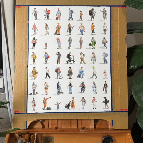 Conhecido por capturar pessoas comuns nas ruas de diferentes lugares, Iury transforma instantes cotidianos em obras de arte, trazendo a cidade para dentro de casa e humanizando cada personagem que pinta. Durante o evento, a pintura partirá de apenas 3 pigmentos selecionados, dos quais nascerá toda a paleta da obra.